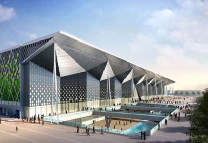 團——26個平均用地規模約為2~3公頃的“展館團”,每個“展館團”可布置40~45個辦展單元,每個“展館團”的總建筑面積約2~2.5萬平方米。每個團按方便和就近的原則,設置小型餐飲、購物、電信、廁所、母嬰服務等公共服務設施。